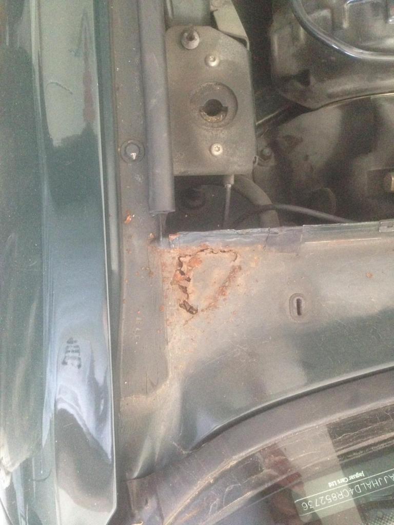 Es gab da noch diese leichte Rostbildung beidseitig am Vorderwagen im Dreieck von vorderen Kotflügeln und Windschutzscheibe. Um das ordentlich zu machen musste die Verkleidung im Motorraum runter und offenbarte das ganze Grauen.