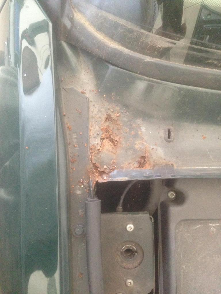Das hat in dem Moment dann doch mein Budget gesprengt. Also, erstmal Rostentferner drauf, wieder zugemacht und in die Mängelliste eingetragen. Dieses Frühjahr dann darf der Lackierer auch diese Baustelle beseitigen.