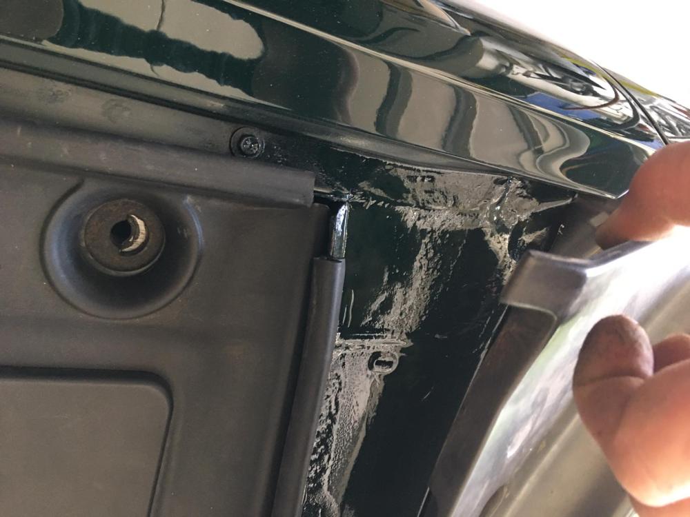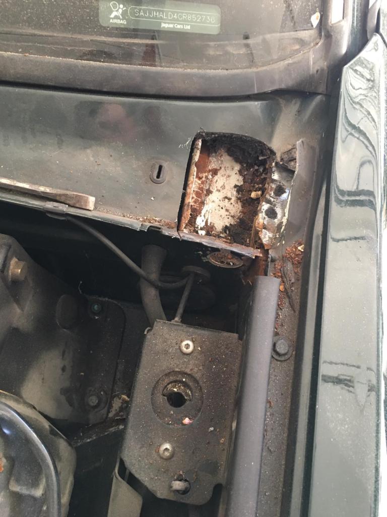 Mein Jag ist wohl nicht der Einzige, der an dieser Stelle Rost angesetzt hat. Im Jaguar-Forum gab es Rückmeldungen dazu, dass es dort typischerweise zu Rostbildung kommt, wenn der Ablauf mittig nicht frei ist. Den wiederum scheint man wohl aber hinter den Innenkotflügel erreichen zu können, um ihn dann mittels eines Drahtes wieder frei zu stochern.