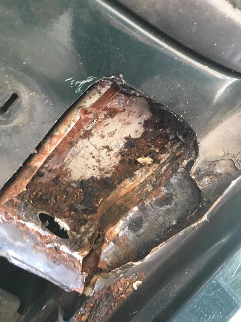 Mein Lackierer hat also, nachdem er das obere Blech des Hohlraums rausgeflext hatte, den inneren Bereich oberflächlich von Rost befreit und dann Rostumwandler aufgetragen. Bevor er den Bereich wieder zugeschweisst hat, wurde der Hohlraum noch fett mit Wachs versiegelt und letztendlich wieder die Orignalfarbe aufgetragen.