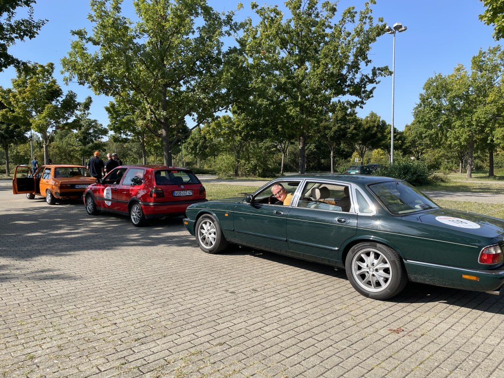 Traditionell findet die Rallye Ende September statt, der Start dieses Jahr war am 27. September auf dem Sachsenring in Oberlungwitz. Ich bin mit meiner Freundin mit dem Jag angereist, die Fahrt von Rheinhessen zum Ring hat sich als sehr angenehm erwiesen. Als erstes mussten dort alle 216 Fahrzeuge eine kleine technische Abnahme durch den AvD durchlaufen, auch Warndreieck, Verbandskasten und Warnwesten wurden gecheckt. Vom Sattelschlepper-Zugfahrzeug Volvo VL7 bis zum dreirädrigen Robin Reliant waren alle Größen und Motorisierungsstärken vertreten.